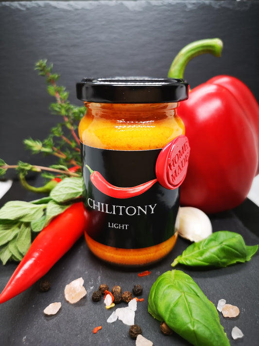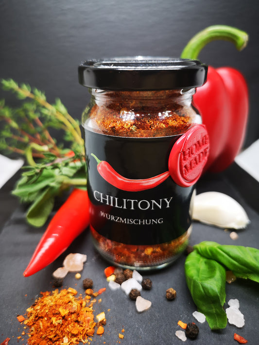 Für Chili-Veteranen ist natürlich Chilitony Hot Pflicht. Geschmack und volle Schärfe teilen sich ein liebevoll gestaltetes Chilitony Glas.