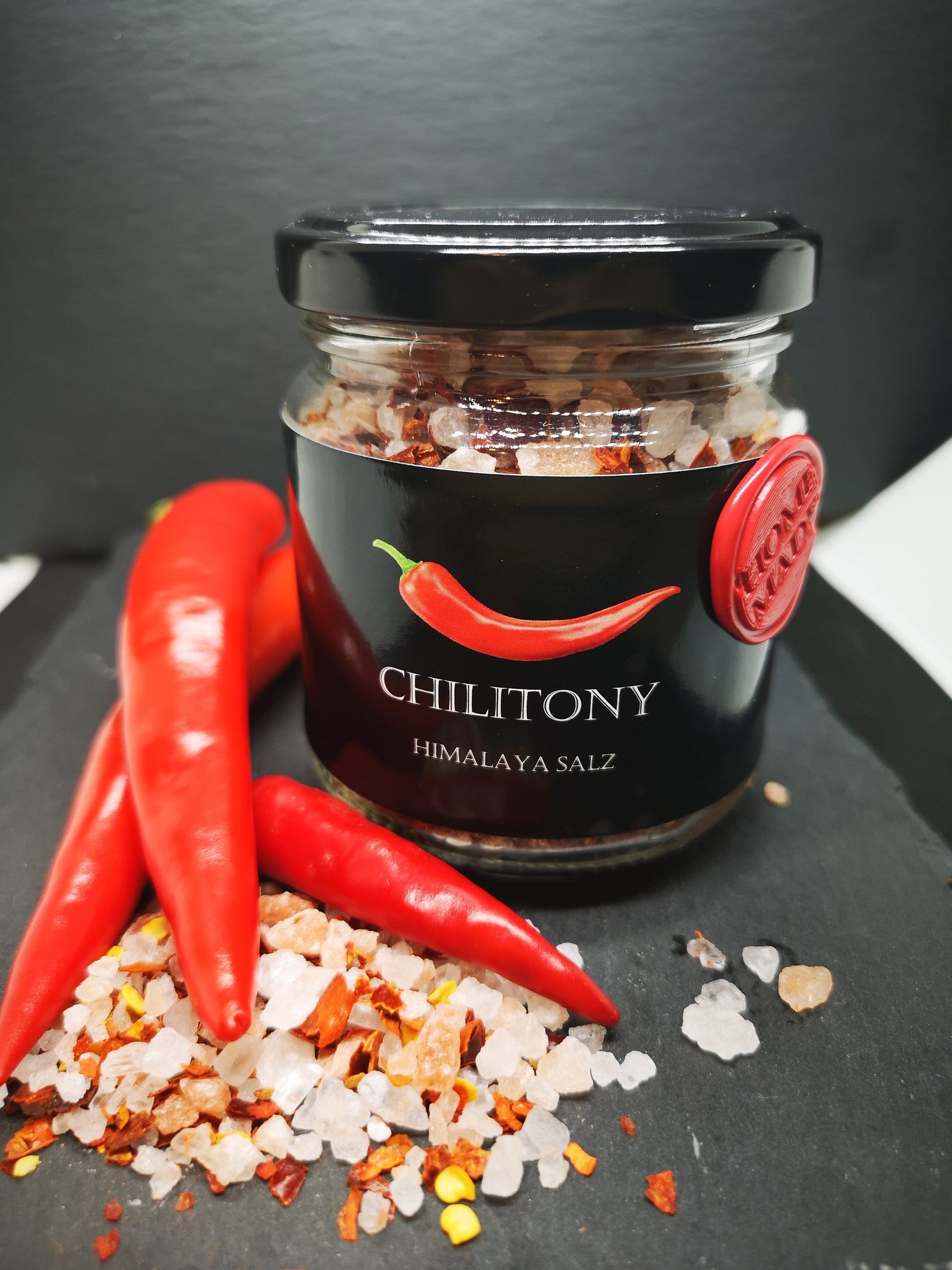 Zu wenig Würze im Essen? Chilitony Chilisalz mit Himalaya Steinsalz sorgt für die nötige Prise in deinem Gericht.